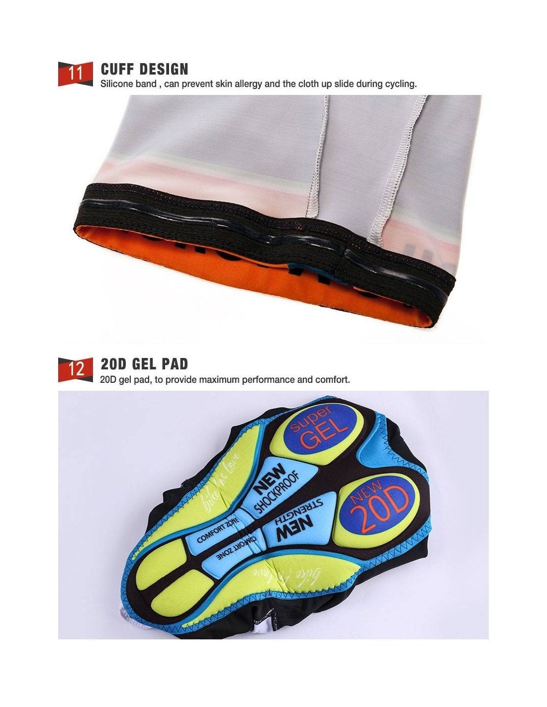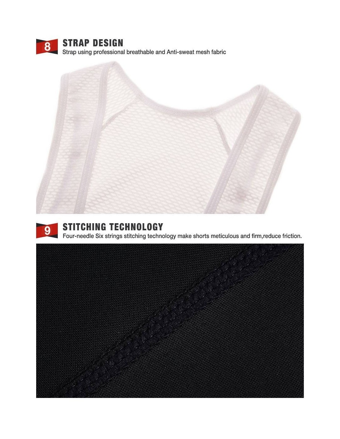 - Sistema Coolmax: La badana se adhiere a la piel sin desplazarse.